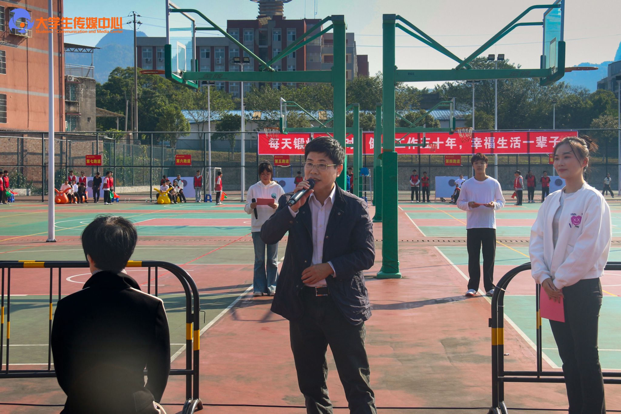11月1日上午,由校体委、校工会主办,第五分工会协办的学校2024年教职工趣味运动会在南校区篮球场火热举行。学校领导韩峻峰、吴江萍、孙山林、葛莉出席开幕式,全校22个参赛队1千余名教职工参加了活动。校党委书记韩峻峰宣布开幕。
