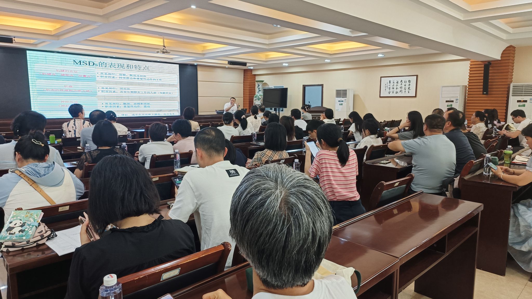 为提升教职工对职业性肌肉骨骼疾患的认识,增强日常养护意识,6月12日下午,校工会在飞天楼520开展《关注脊柱健康,共筑教育新活力--教育行业职业性肌肉骨骼疾患》健康讲座。本次讲座邀请到桂林市中医医院匡家毅教授担任主讲嘉宾,校工会领导主持,来自学校22个分工会60余名教师参加此次讲座。