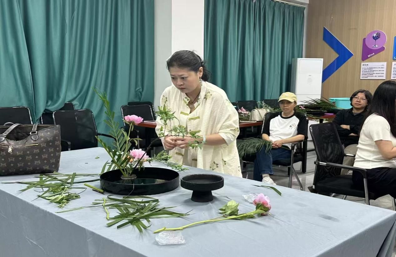 插花艺术课堂上,专业花艺师从花材选择、色彩搭配、造型设计等方面进行细致讲解。老师们从修剪、构思、搭配,将自然之美与艺术创意完美融合,创作出一件件独具匠心的插花作品。在感受花艺魅力的同时,也舒缓了工作压力,提升了审美情趣。
